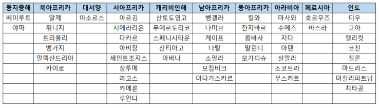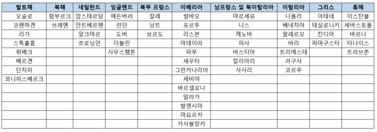 특정 문화권에 무슨 항구들이 있는지 알기 쉽게 표로 정리해보았습니다