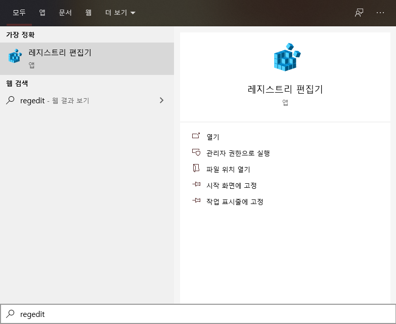 이는 레지스트리 편집기로 해결하실 수 있는데요