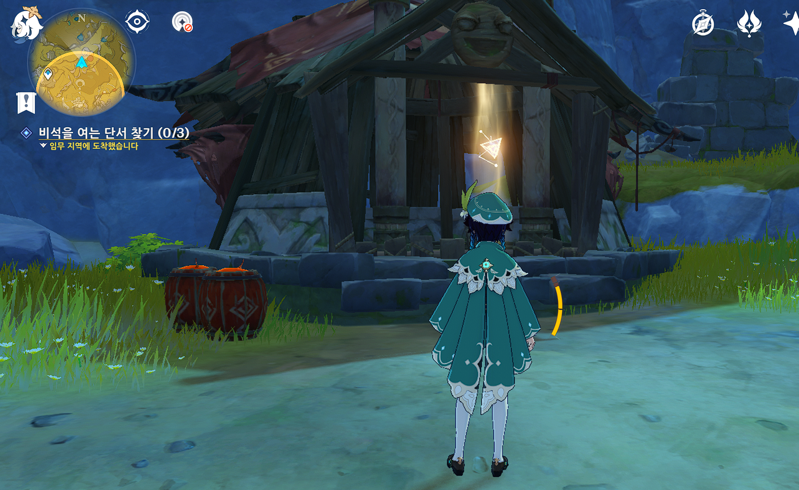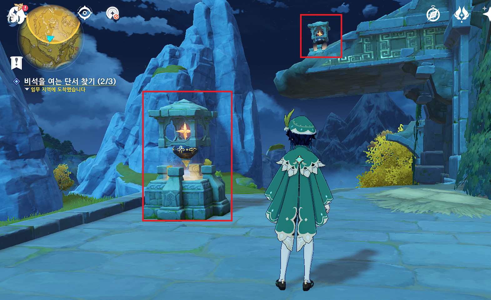 퀘스트가 클리어되며 위쪽 유적의 문이 열립니다