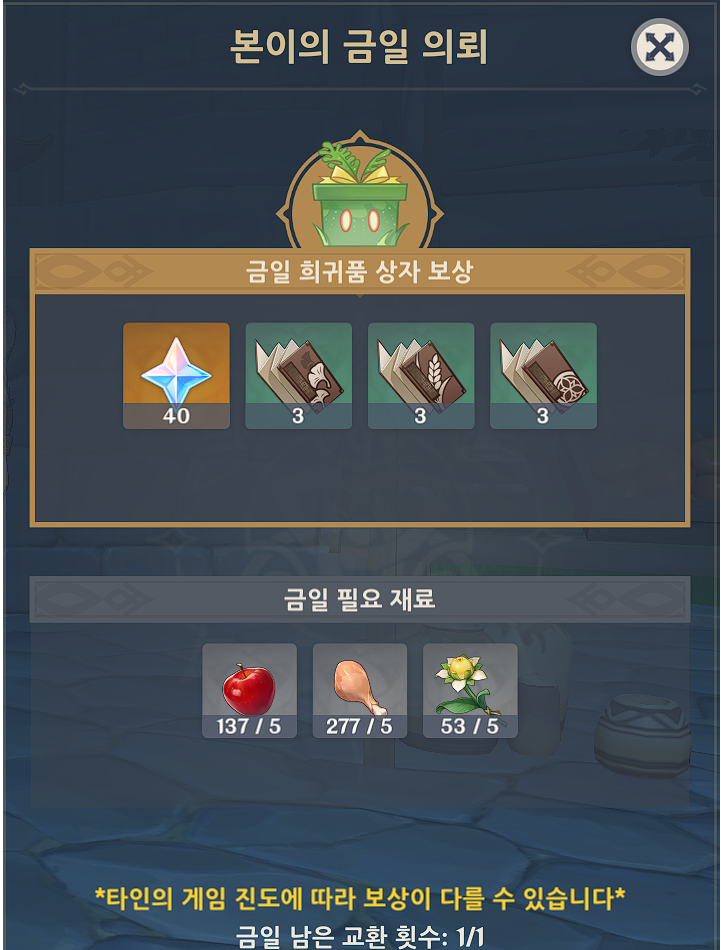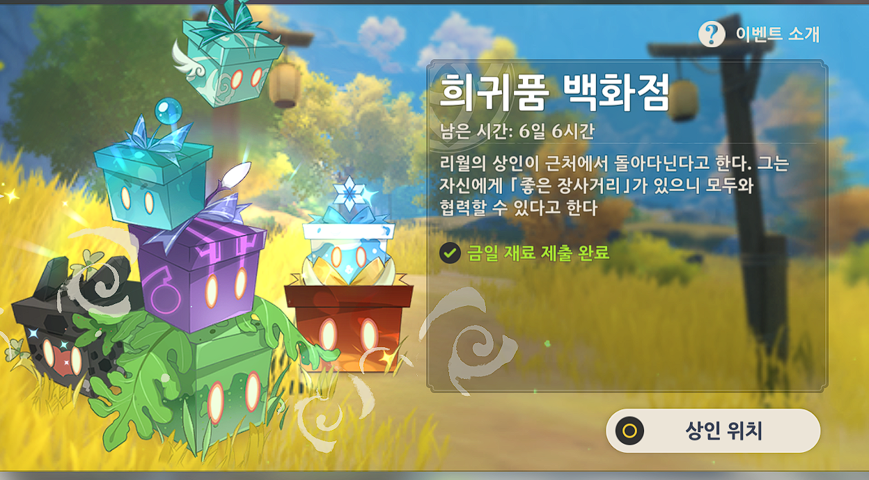 특정 재료를 주고 상자를 수령하는 이벤트입니다