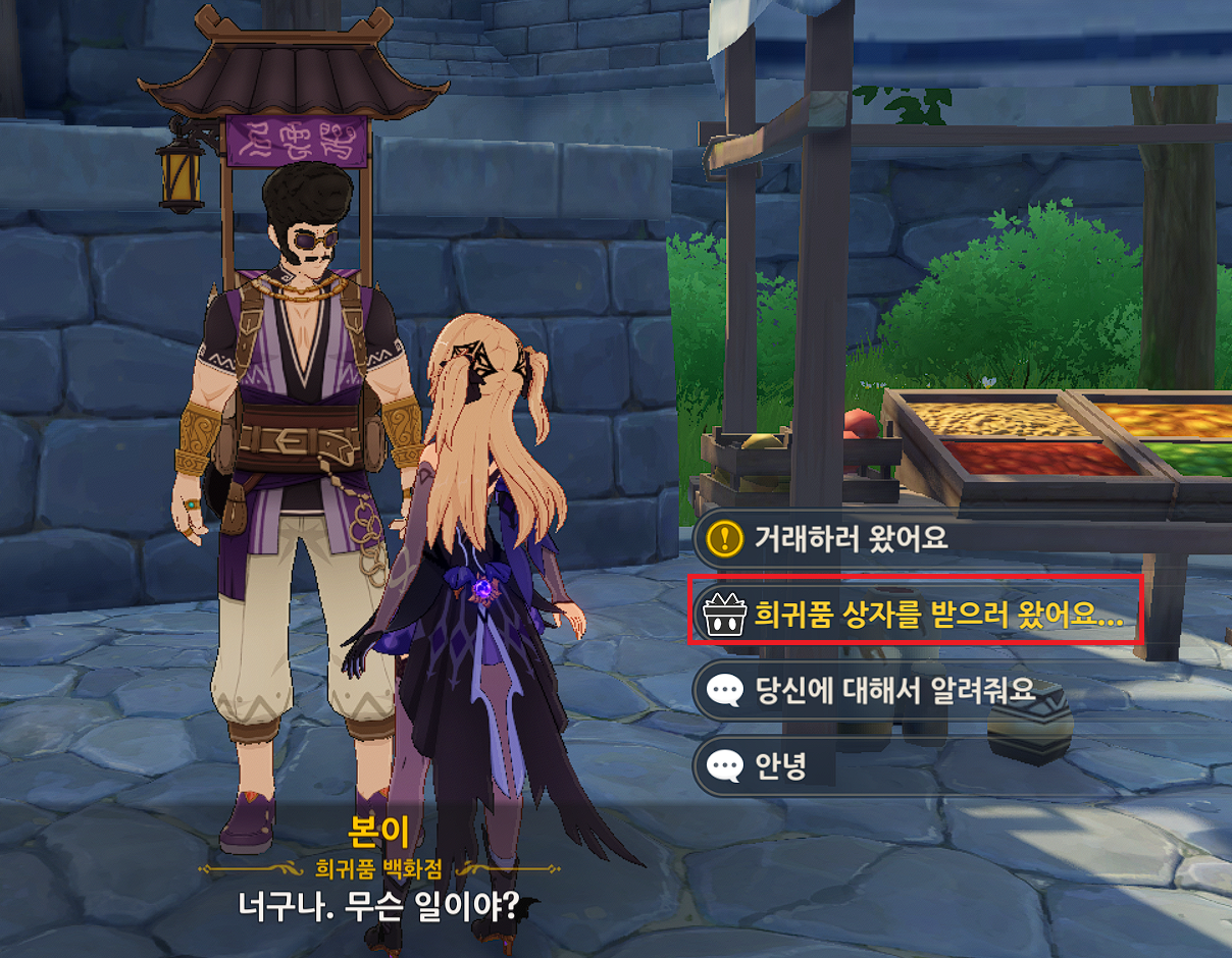 "희귀품 상자를 받으러 왔어요..."를 누릅니다