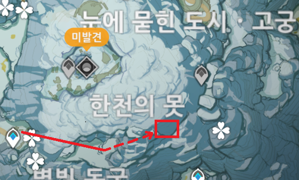 그 앞쪽에 얼음이 떠다니는 연못에 도전이 있는데